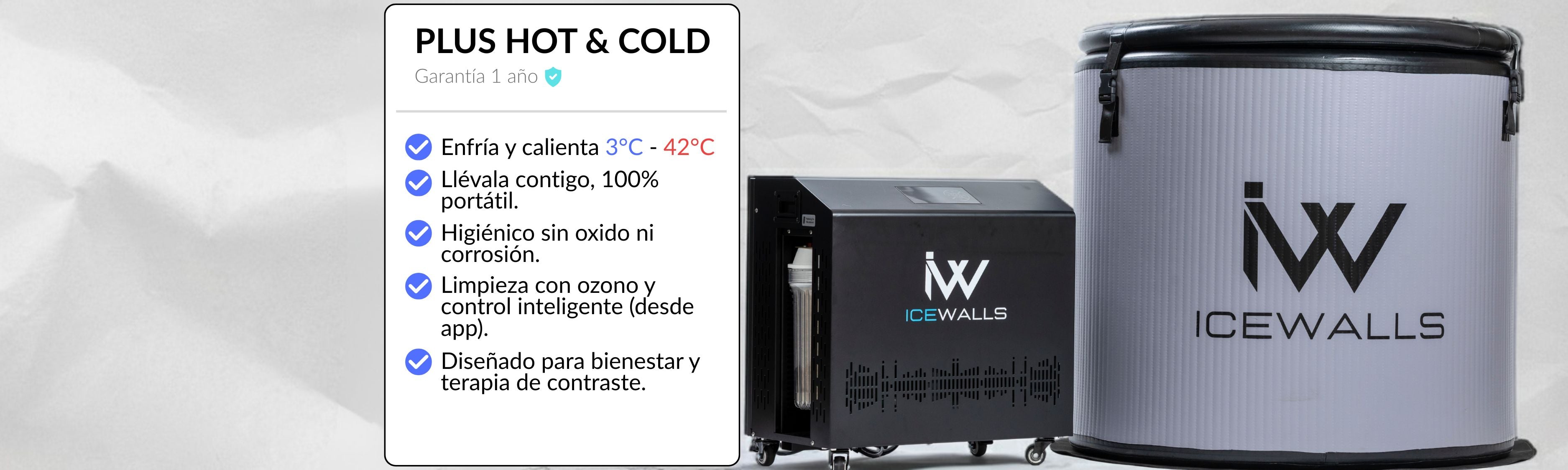 Convierte tu rutina en una experiencia de bienestar total. Con la nueva Ice Walls Plus Hot & Cold, la temperatura perfecta está siempre lista: funciona como un ice bath profesional para revitalizar tu cuerpo o como un jacuzzi caliente para una relajación profunda después de un día intenso.
